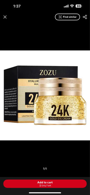 Feel confident with brighter, smoother eyes as our Gold Glow Eye Cream reduces dark circles and puffiness. Its revitalizing formula blends K Gold and hyaluronic acid, providing deep hydration that transforms tired eyes into radiant, refreshed ones. Embrace each day with a youthful, revitalized look.